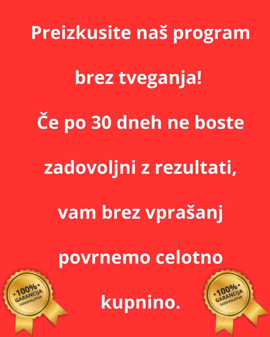 Garancija 30-dnevnega vračila denarja: Če rezultati ne bodo ustrezali pričakovanjem, povrnemo kupnino.